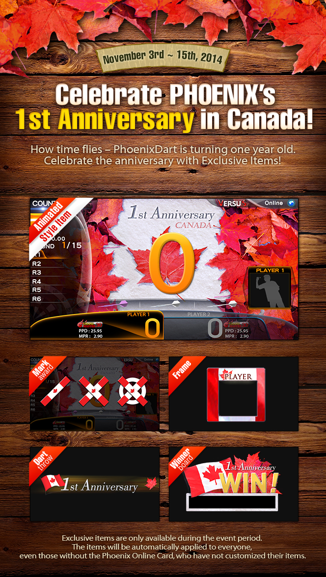 [Event] Celebrate PHOENIX's 1st Anniversary in Canada! 2014-10-21 November New Item Update! ▲ 2025-11-11 ▼ Guide to register Free Pass Card. 2014-10-08 List