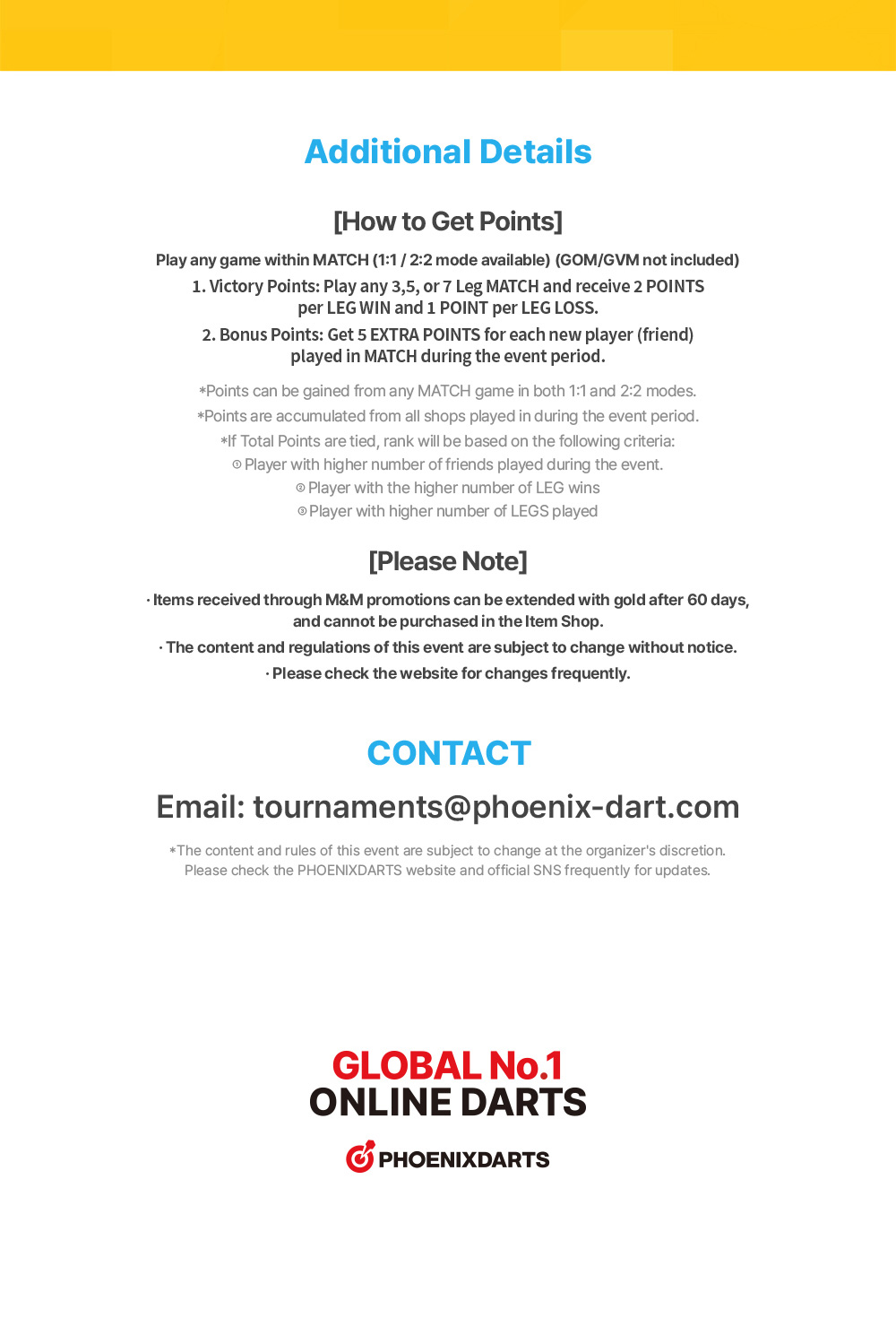 [Event] MEET & MATCH: Phoenixdarts Friends Project 2024-07-31 ÉVÉNEMENT D’OUVERTURE DU NOUVEL ITEM SHOP ▲ 2025-10-31 ▼ Phoenix Mission de août : Welcome to the Jungle 2024-07-30 List