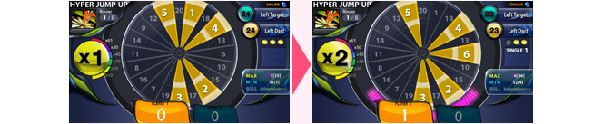 Your multiplier increases every time you hit a blinking number (excluding bullseyes).You can only hit bullseyes 4 times.For exampleIf you hit triple 15 when 15 is blinking and your multiplier is 14, you will earn 630 points (15 x 3 x 14).If you hit triple 20 when 20 is not blinking, you will earn 60 points (20 x 3). -