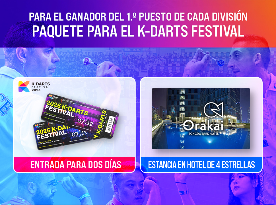 ¡Los ganadores del 1.º puesto de cada división de la Final Nacional recibirán un paquete de inscripción para el K-DARTS FESTIVAL 2026!