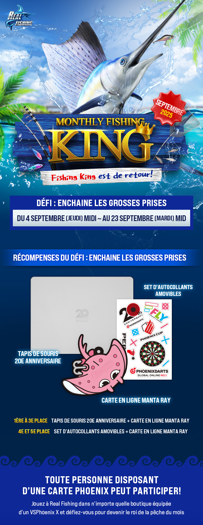 - MACHINE : Les classements actuels peuvent être consultés dans la vidéo de l’événement Fishing King