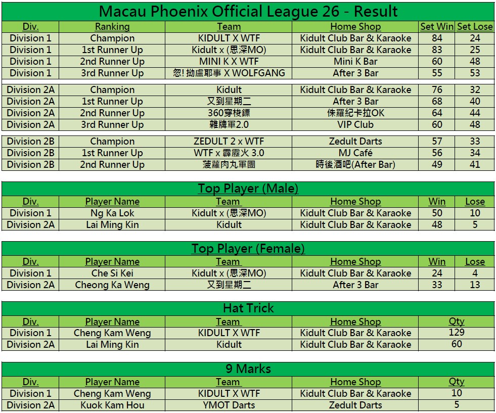 [比賽] Macau Phoenix Official League 26 全季成績公佈
