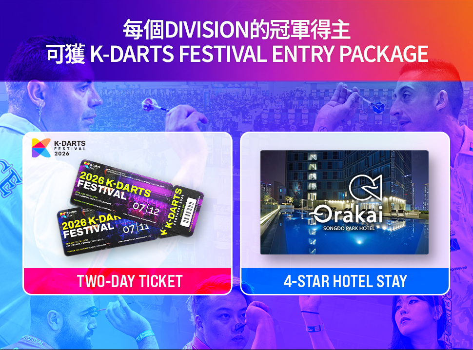 各組別的National Final冠軍,將獲贈 2026 K-DARTS FESTIVAL Entry Package!