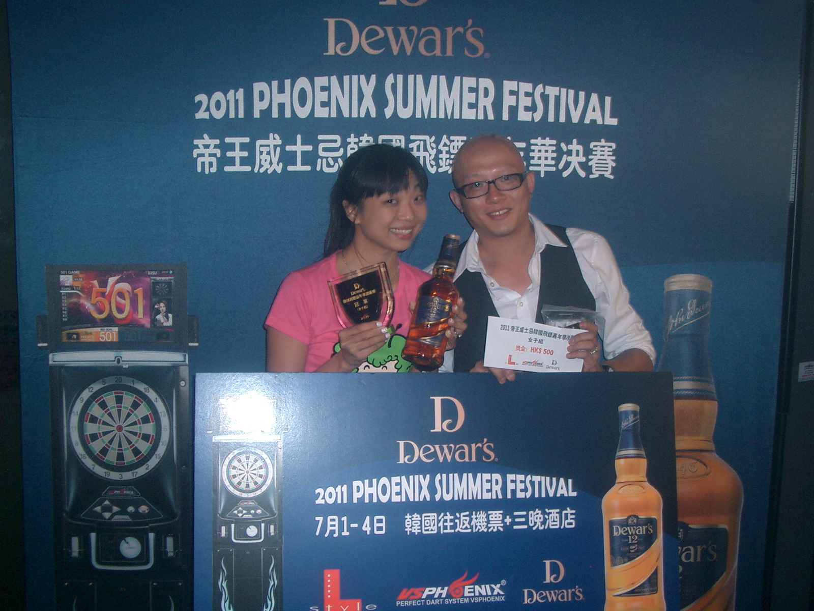 感謝各位參賽者及廣大觀眾的支持,緊湊的帝王威士忌韓國飛鏢嘉年華決賽已經圓滿結束,掌聲之中,女子組的冠亞軍經已順利誕生,現公報得獎名單,冠軍為Esanna,亞軍為Connie,恭喜兩位得獎者。