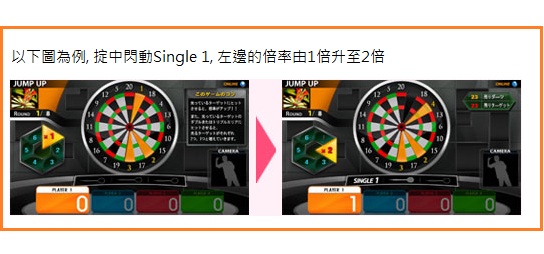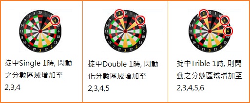 遊戲進行時,玩家會看見螢光幕上的鏢靶分數區域分為三種情況