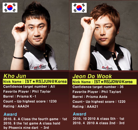兩位頂級選手分別為剛奪得The 8th ADA Tour Blue Girl Beer Men's Top Gun 冠軍的Kho Jun 及於晚宴上勝出Dewar's 飛鏢比賽的Jeon Do Wook。