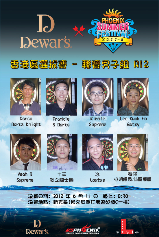 聯賽男子組R12第三場分站賽於Darts Fever進行,24名選手分6組進行小組淘汰,每組首兩名出線再進行次循環分組賽,經過一輪龍爭虎鬥後,8強精英順利誕生。分別是