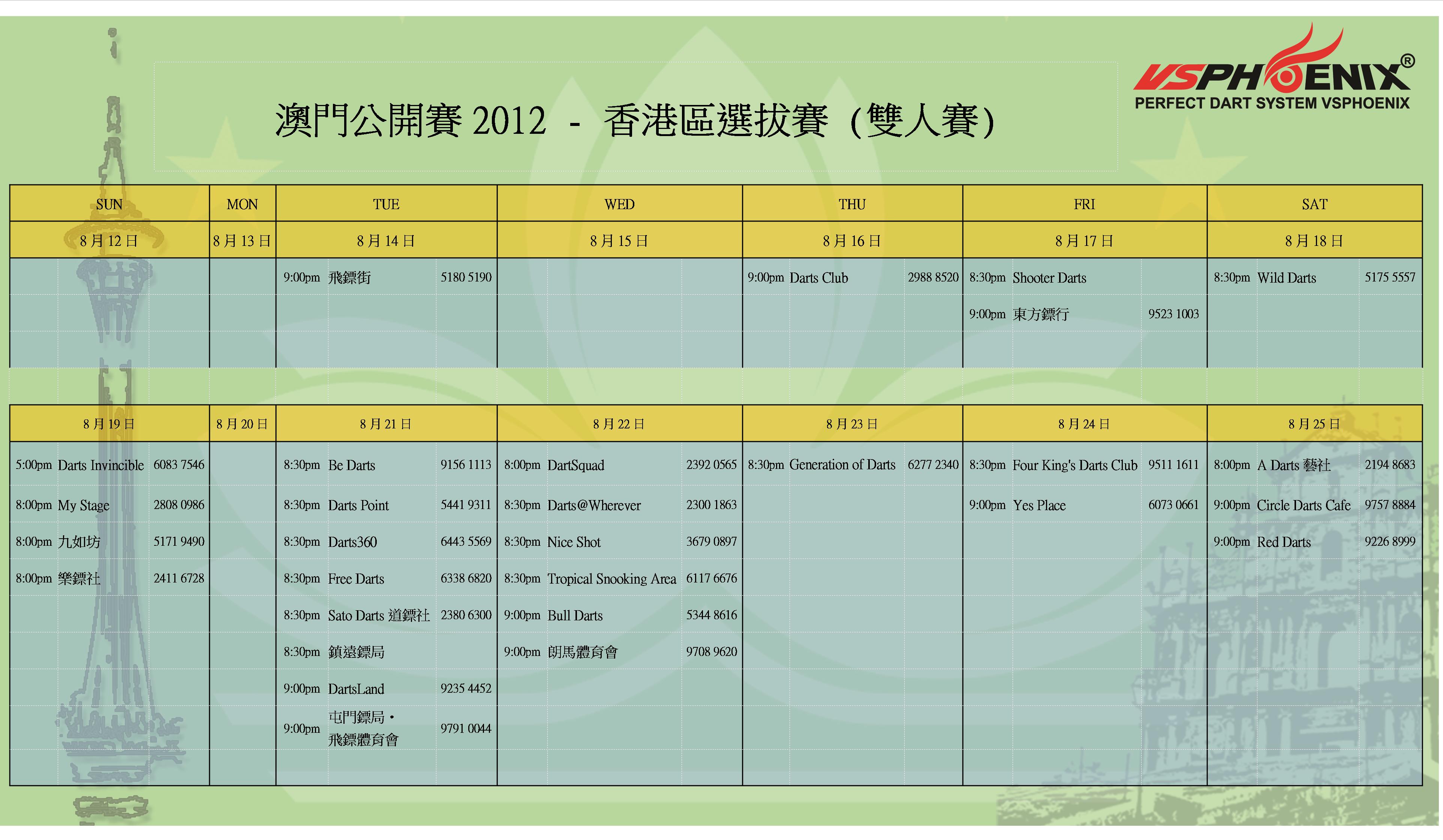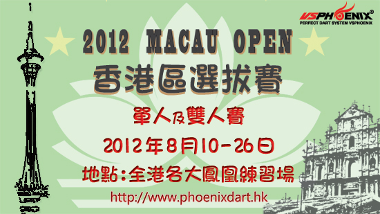 Phoenix登陸Hong Kong兩週年,為了答謝大家一直以來的支持,我們預備了多項特別活動帶給大家!而鏢壇近期最令人期待的盛事,應該是澳門飛鏢公開賽2012!想免費過澳門參賽?機會就在眼前!