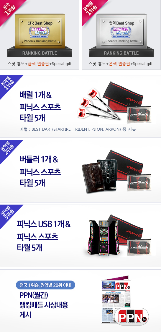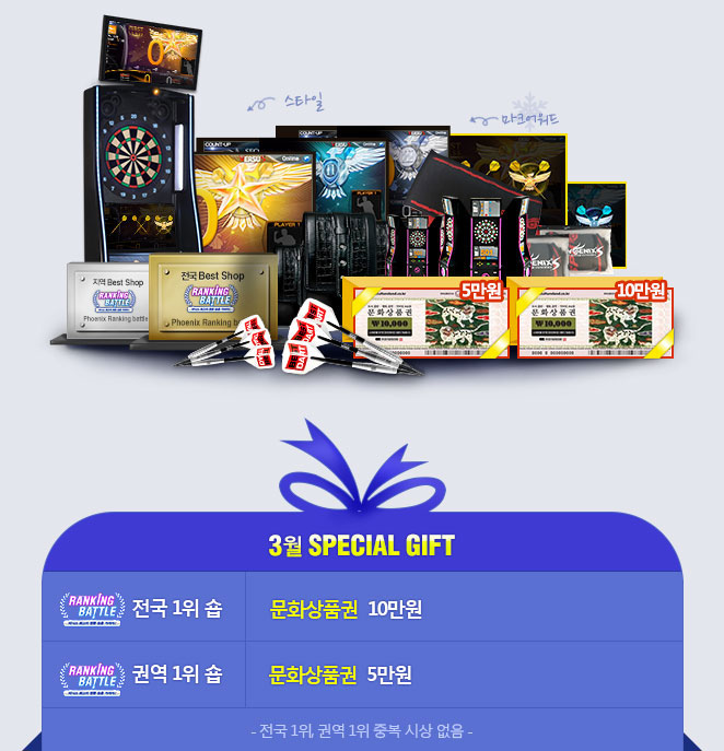 | 플레이어 | 권역별 20위 이내 숍 1위 | 한정판스타일+사운드+마크어워드 |
