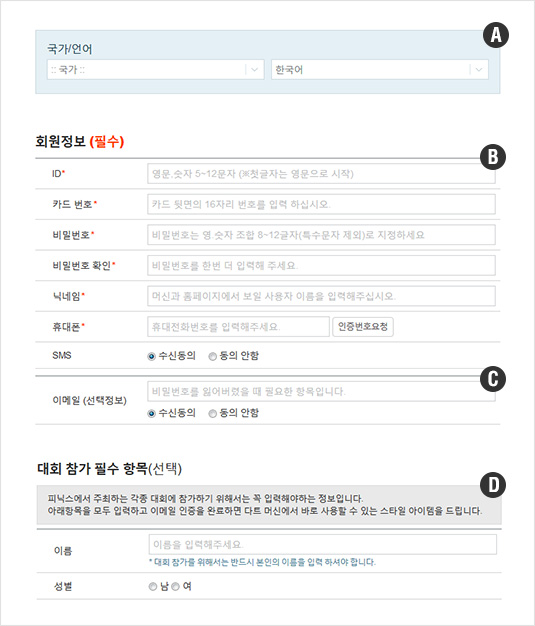 ID와 패스워드, 카드 넘버, 닉네임, 휴대전화 번호를 입력하면 끝!