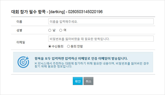 - D대회참가 필수 입력 : 피닉스다트 공식대회에 참가하기 위해서는 꼭 필요합니다. 모두 입력하시면 머신에서 쓸 수 있는 스타일 아이템을 1종을 랜덤으로 드립니다.