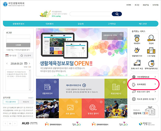 - 1. 국민생활체육회 사이트 접속 후 우측 동호회클럽 배너 클릭