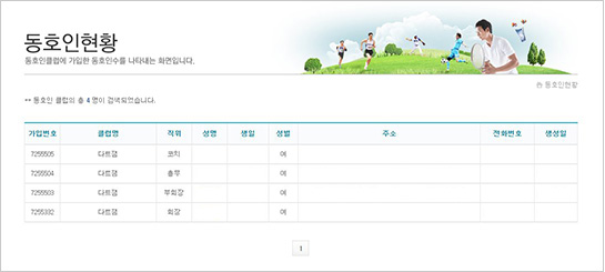 - 7. 일괄 등록을 하면 동호인 명단이 자동으로 생성됩니다.