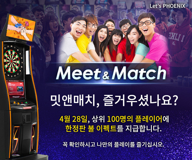 [이벤트] MEET & MATCH REWARD 2016-04-28 상위 100명 플레이어 확인하기 2025년 11월 다트플렉스 B클래스 토너먼트 ▲ 2025-11-14 ▼ [더 챔피언] 가정의 달 이벤트 2016-04-27 목록