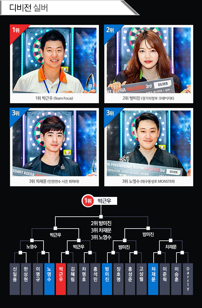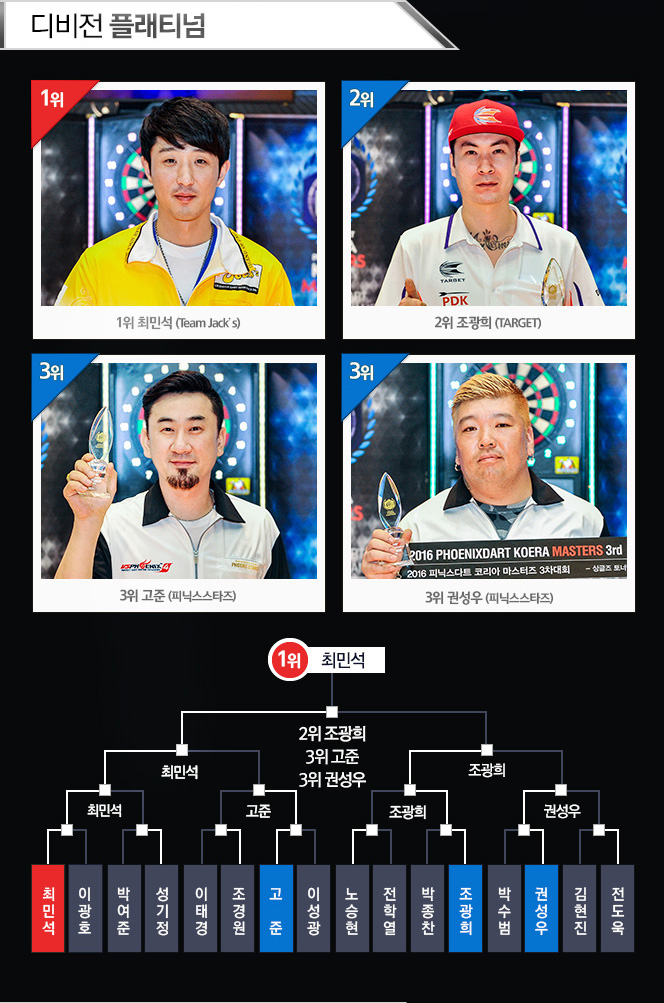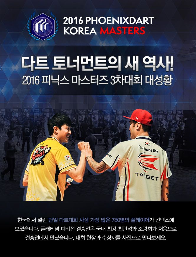[공지] 2016 코리아 다트 마스터즈 3차 대회 결과발표 2016-09-12 2025년 11월 다트플렉스 B클래스 토너먼트 ▲ 2025-11-14 ▼ 동호회 레벨 이벤트! 2016-09-08 목록