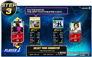 1. 온라인 카드 터치 후 캐릭터를 선택하고 1:1 대결 진행
