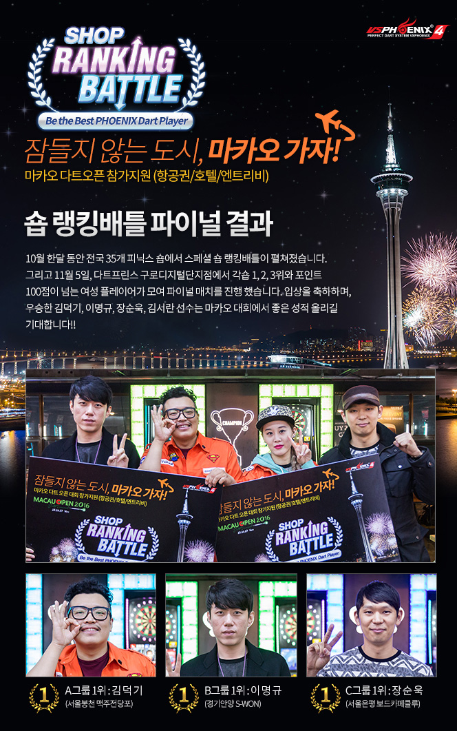 [이벤트] 숍 랭킹배틀 파이널전! 2016-11-09 2025년 11월 다트플렉스 B클래스 토너먼트 ▲ 2025-11-14 ▼ TEKKEN 501 최강자전 이벤트! 2016-11-09 목록