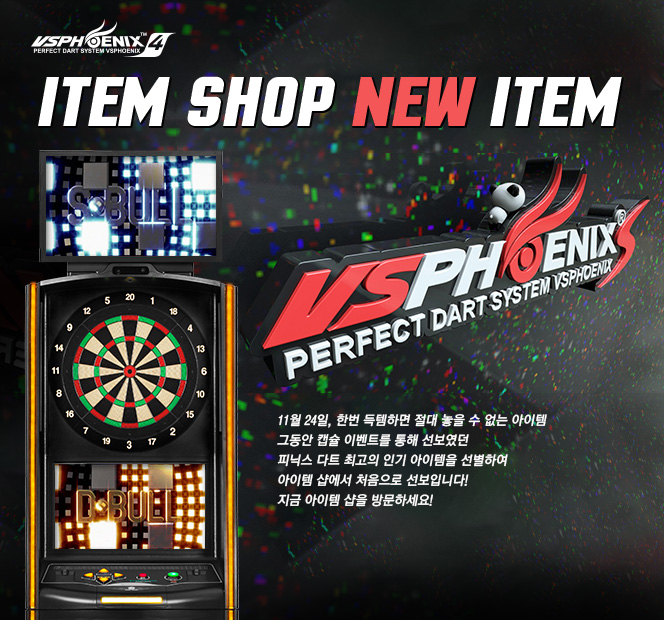 [이벤트] ITEM SHOP NEW ITEM 2016-11-24 아이템샵 바로가기 2025년 11월 다트플렉스 B클래스 토너먼트 ▲ 2025-11-14 ▼ [더 챔피언] 힐링다트여행 (말레이시아 피닉스컵 참가지원) 2016-11-17 목록