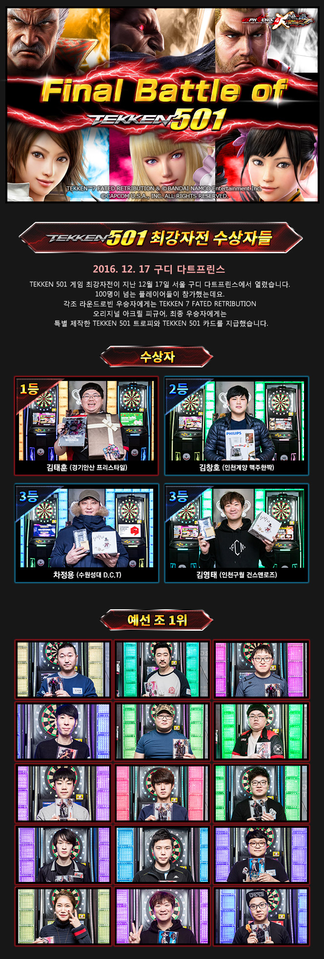 [공지] TEKKEN 501 최강자전 2016-12-22 2025년 11월 다트플렉스 B클래스 토너먼트 ▲ 2025-11-14 ▼ 더 챔피언 말레이시아 피닉스컵 스케치 2016-12-22 목록
