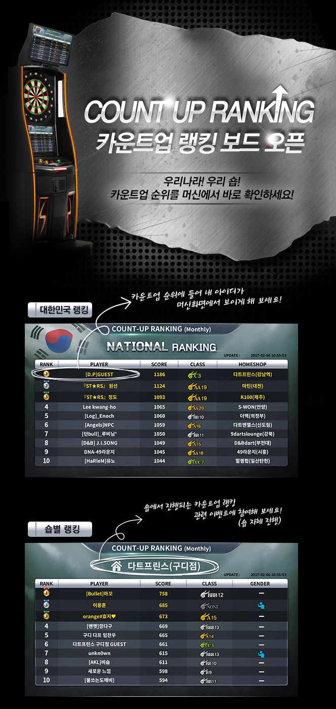 ※ 랭킹은 한달 단위로(매월 1일) 리셋됩니다.