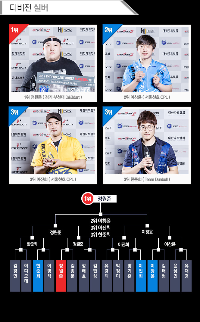 [이벤트] 2017 피닉스다트 코리아 마스터즈 1차대회 결과 2017-03-17 2025년 11월 다트플렉스 B클래스 토너먼트 ▲ 2025-11-14 ▼ 2017 퍼펙트 코리아 1차대회 결과 2017-03-14 목록
