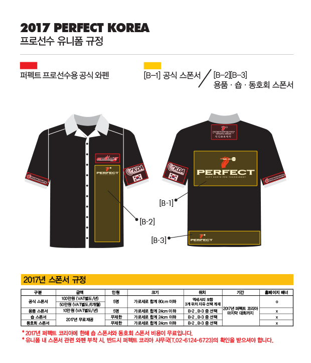 * 유니폼 내 스폰서 관련 와펜 부착시, 반드시 퍼펙트 코리아 사무국(T.02-6124-6723)의 확인을 받으셔야 합니다.