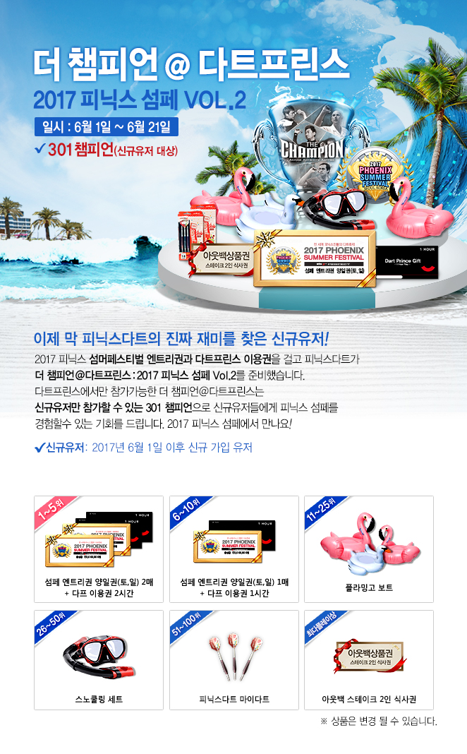 - [이벤트] 신규유저 모여라! 챔피언하고 섬페 엔트리권 받자!(다트프린스)