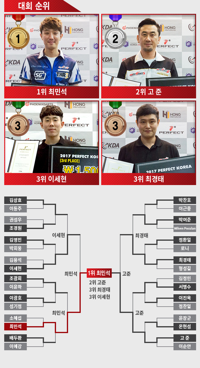[공지] 2017 퍼펙트 코리아 5차대회 결과 2017-10-16 2025년 11월 다트플렉스 B클래스 토너먼트 ▲ 2025-11-14 ▼ [더 챔피언] 추석맞이 이벤트 결과 공지 2017-09-29 목록
