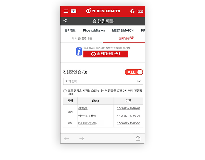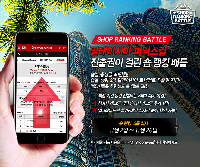 자세한 내용은 피닉스 앱 ‘숍 랭킹배틀’ 에서 확인하시거나 참가숍에 문의해주세요!
