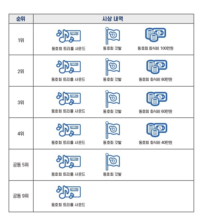 • ·동호회 FRAME은 동호회 대항전 예선 종료 후 일괄 지급됩니다.