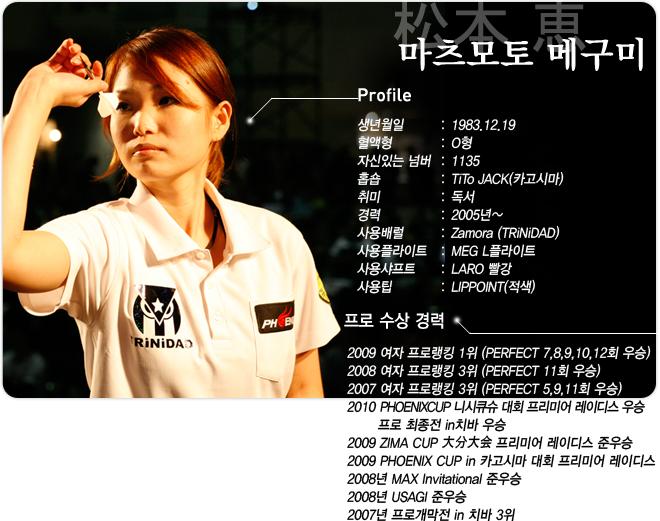 2위 에구치 유우지 (江口 祐司),3위 호시노 미츠마사 (星野 光正)2009 여자 프로랭킹:1위 마츠모토 메구미 (松本 恵),