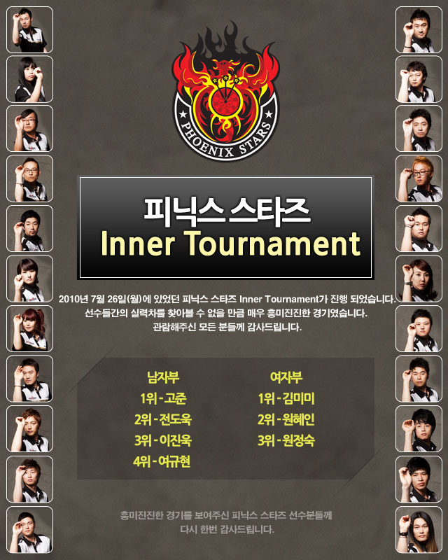 [공지] 피닉스 스타즈 Inner Tournament 결과 2010-07-27 2025 퍼펙트 코리아 8차 & 피닉스컵 4차 개요 ▲ 2025-11-19 ▼ 제4회 A Class대회 2010-07-27 목록