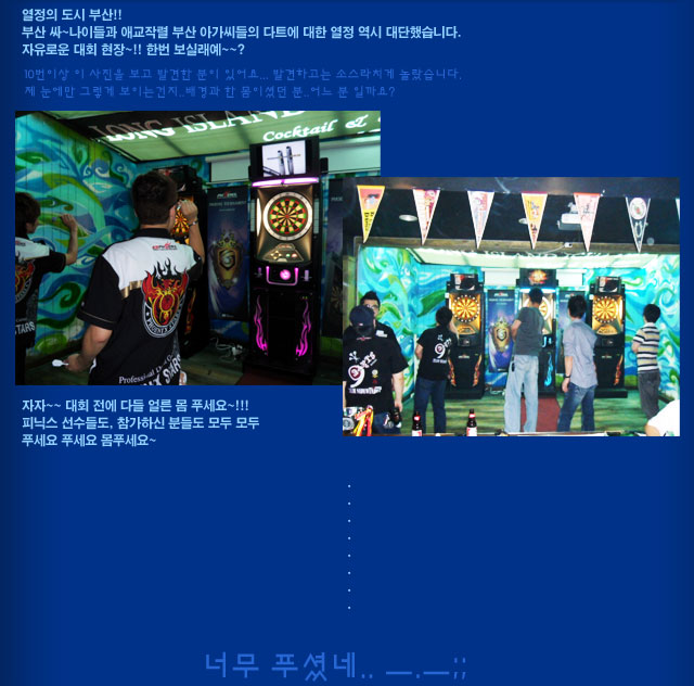 [공지] 제1회 부산 A Class 대회 이모저모 2010-08-03 2010년 8월 1일(일요일) 오후 1시부터 시작한 부산 A Class대회! 2025 퍼펙트 코리아 8차 & 피닉스컵 4차 개요 ▲ 2025-11-19 ▼ 피닉스 스타즈 Inner Tournament 결과 2010-07-27 목록