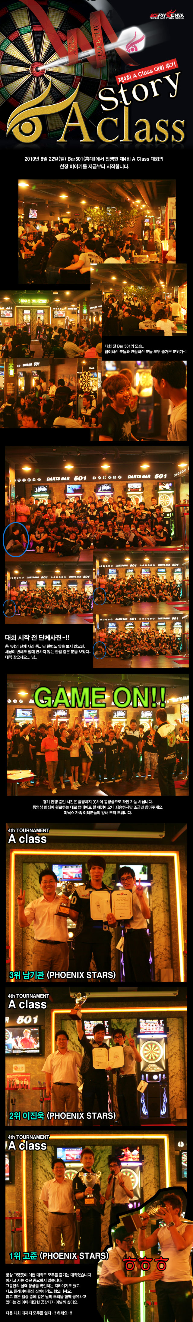 [공지] 제4회 A Class 대회 - 후기 2010-08-23 2010년 8월 22일(일) Bar 501(홍대)에서 진행한 제4회 A Class 대회의 현장 이야기를 지금부터 시작합니다. 2025 퍼펙트 코리아 8차 & 피닉스컵 4차 개요 ▲ 2025-11-19 ▼ Casual Darts Bar 501 - 수원점 오픈 2010-08-23 목록