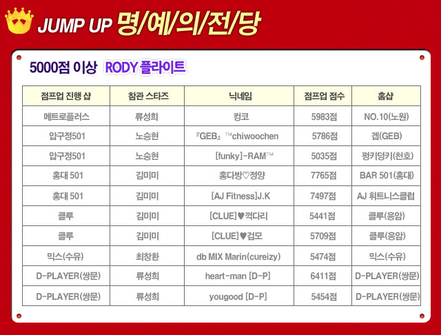 [게임] JUMP UP!! 10000점이상 7777점을 잡아라!! 2010-10-08 2025 퍼펙트 코리아 8차 & 피닉스컵 4차 개요 ▲ 2025-11-19 ▼ 소프트웨어 업그레이드 안내 2010-10-01 목록