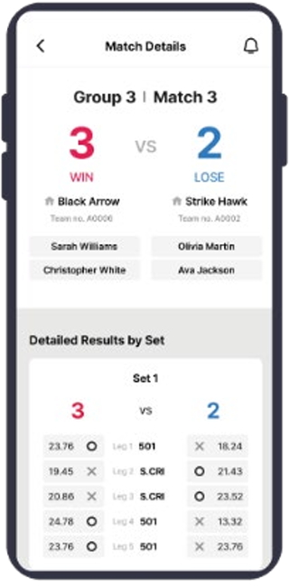 • Second Leg: Loser of the previous leg throws first. (FIVE (5) sets are in the same way)