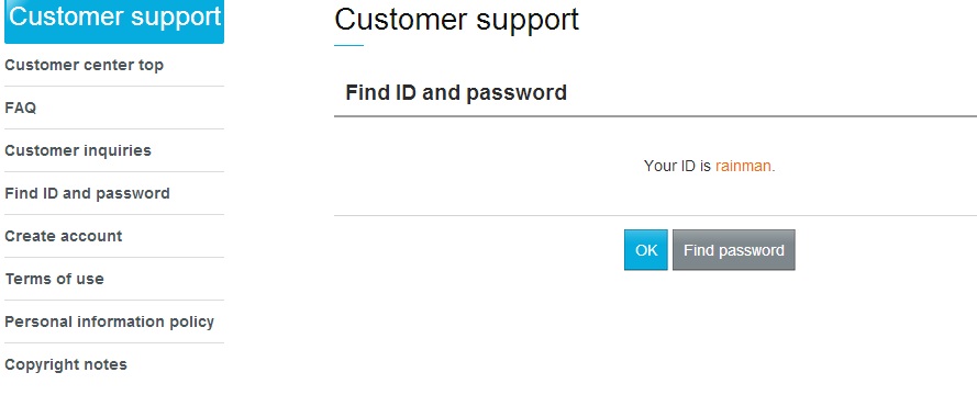 Procurar ID / palavra-passe