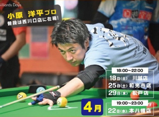 【4/29(水)ビリヤード】Link所属!小原洋平プロ インストラクターDay!