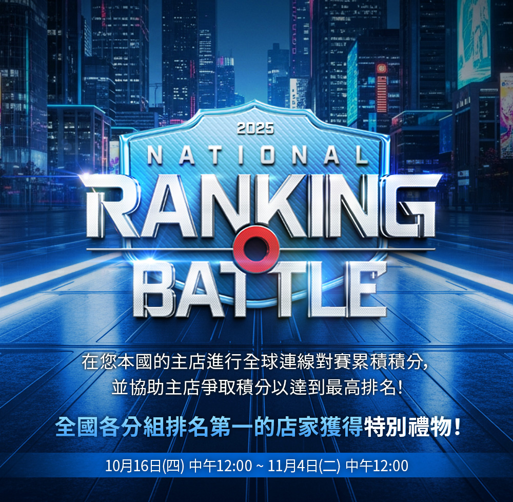 - ※店家及玩家排名均可在特別設置的國家排名爭霸賽頁面查閱。