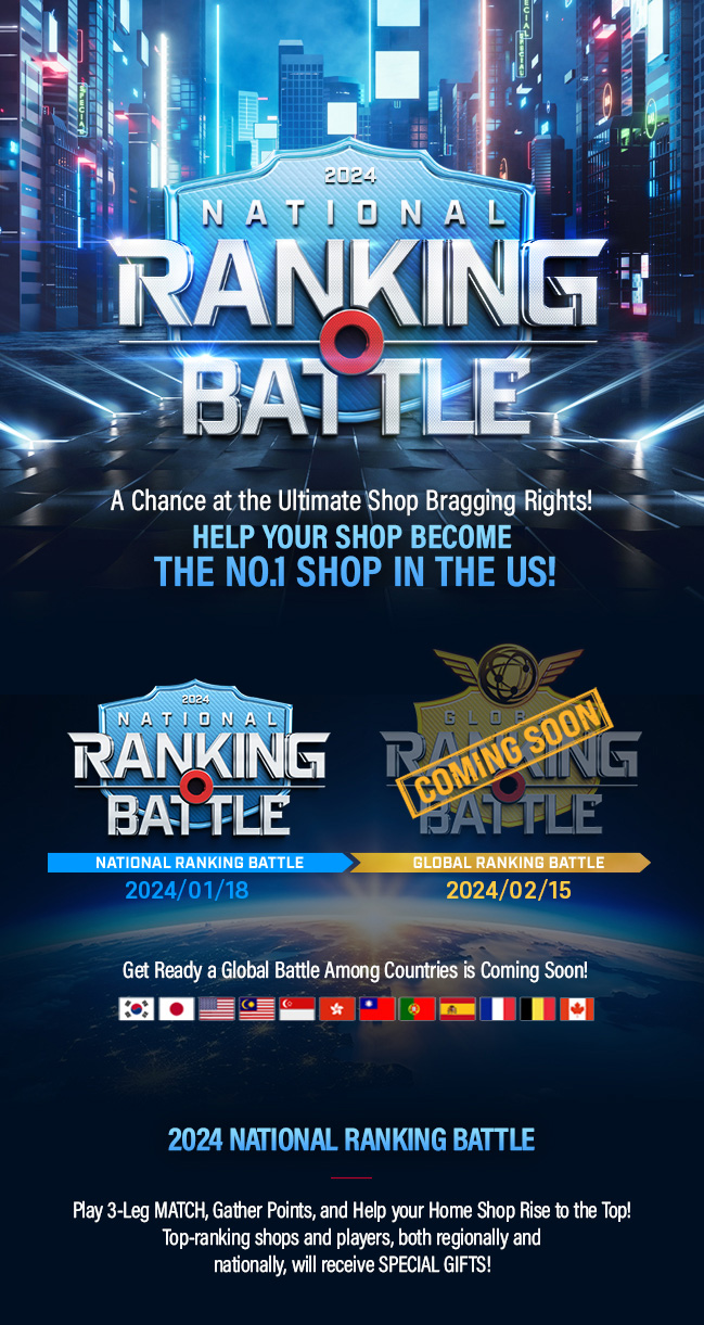 Rankings are determined by adding up points collected through MATCH games played by the players in each shop. The highest scoring Shop will win the title of the No. 1 Shop in the US!