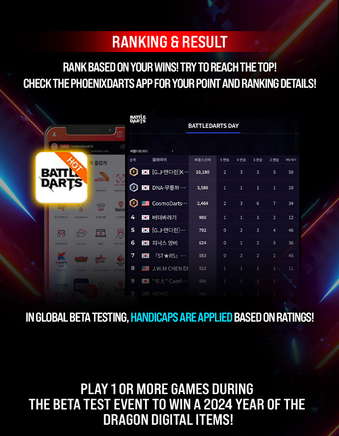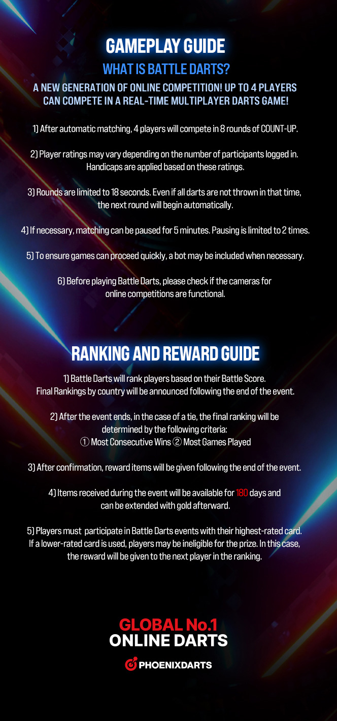 [Event] BATTLE DARTS GLOBAL BETA TEST 2024-03-15 HALLOWEEN ITEM EVENT ▲ 2025-10-16 ▼ Item Shop UPDATE & Top Item Online Card EVENT! 2024-03-14 List