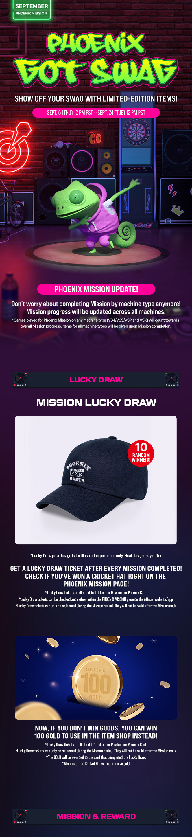 [Event] Sept. Phoenix Mission: Phoenix Got Swag! 2024-08-29 HALLOWEEN ITEM EVENT ▲ 2025-10-16 ▼ VS BOXER RANKING EVENT 2024-08-08 List