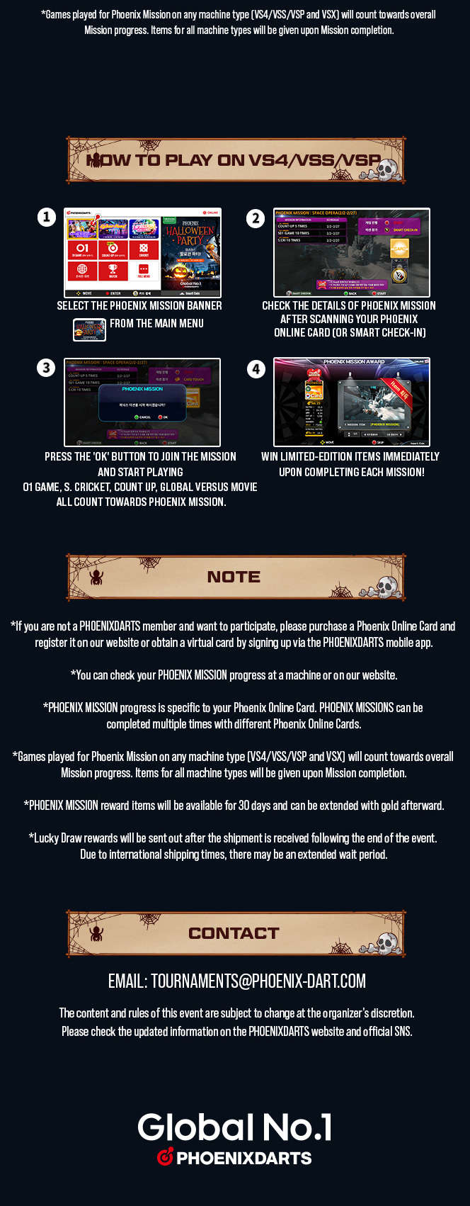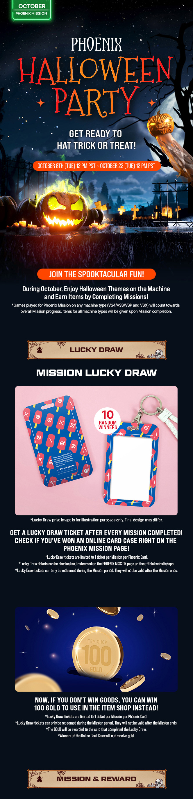 [Event] October Phoenix Mission: Halloween Party 2024-10-01 HALLOWEEN ITEM EVENT ▲ 2025-10-16 ▼ VSPhoenix X Global Online Match System Update 2024-09-30 List