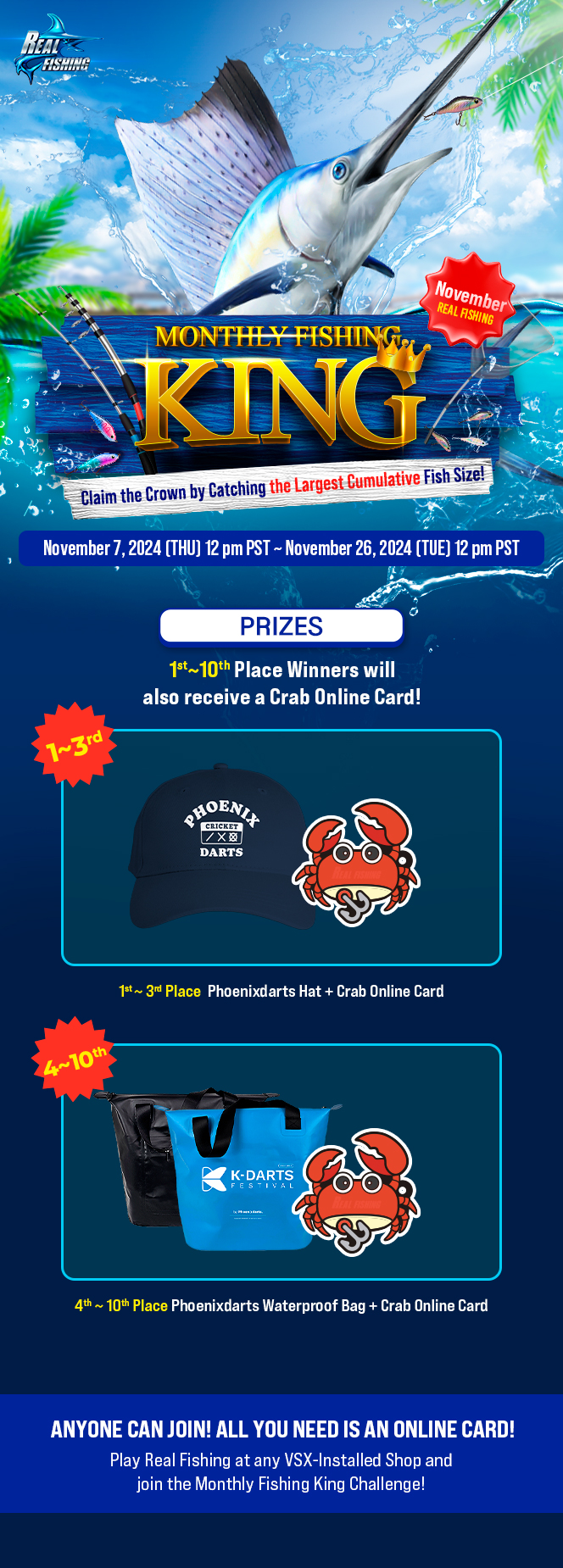 - Rankings can also be checked on the VSX machine when they appear in the Real Fishing campaign video