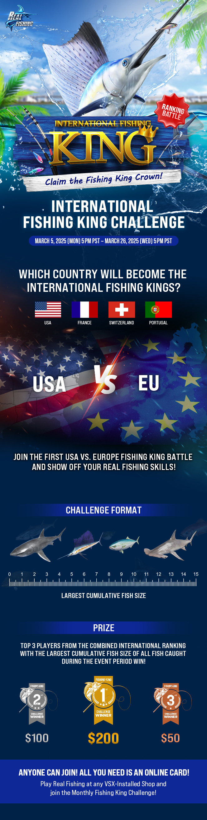 - Rankings can also be checked on the VSX machine when they appear in the Real Fishing campaign video