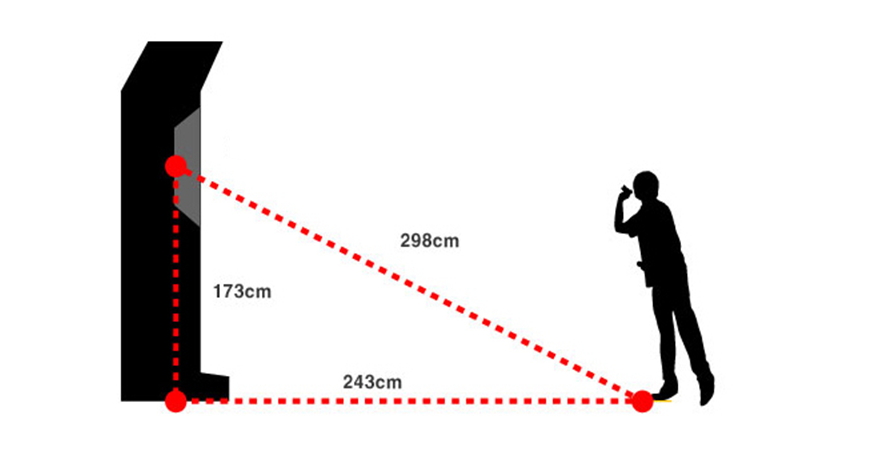 The straight-line direction from throw line to board is 243cm and the height from floor to bull is 173cm.