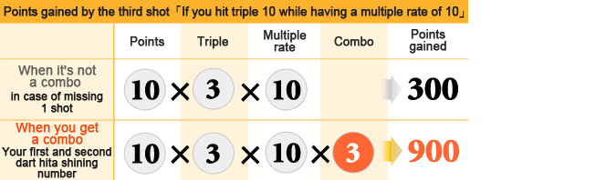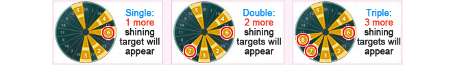 You can only hit bullseyes 4 times.For example, if you hit triple 15 when 15 is blinking and your multiplier is 14, you will earn 630 points (15 x 3 x 14). If you hit triple 20 when 20 is not blinking, you will earn 60 points (20 x 3).