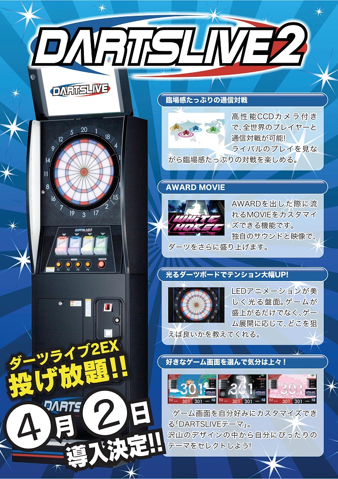 4月2日にダーツライブ2台の増台が決定しました!!!