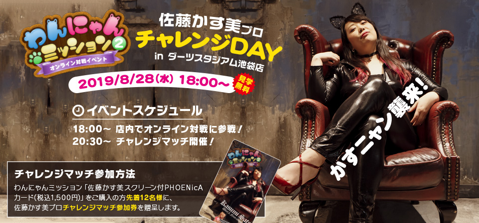 わんにゃんミッション2 佐藤かす美プロ チャレンジDAY in ダーツスタジアム池袋店 開催!