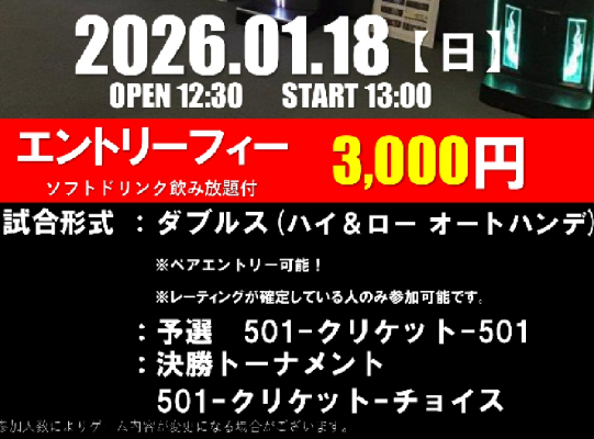 2026.01.18(日)にハウストーナメント開催決定🎯✨